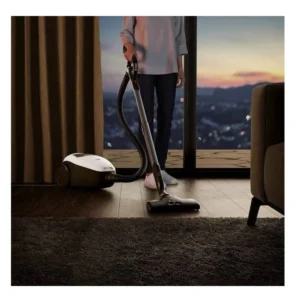 موتور ۲۲۰۰ واتی این جاروبرقی، توان مکش ۶۰۰ وات را فراهم میکند که بهراحتی میتواند گردوغبار، مو و ذرات ریز را از روی فرش، موکت و کفهای سخت جمع کند. اما نکته جالب اینجاست که با وجود این قدرت بالا، عملکرد دستگاه بسیار کمصدا است. سطح نویز آن تنها ۵۷ دسیبل است که به لطف فناوری Silent Air، صدا را تا حد زیادی کاهش داده و تجربهای آرامتر را هنگام جارو کشیدن فراهم کرده است. این ویژگی بهویژه برای کسانی که کودکان کوچک دارند یا ترجیح میدهند در محیطی آرام کار کنند، اهمیت زیادی دارد.یکی از قابلیتهای جذاب این مدل، فناوری Intelligente SmartMode است. این فناوری بهطور خودکار قدرت مکش را بسته به نوع سطح تنظیم میکند. مثلاً وقتی از فرش به کفپوش سخت تغییر مکان میدهید، دستگاه خودش تشخیص داده و قدرت مکش را متناسب با آن تنظیم میکند.