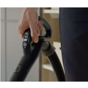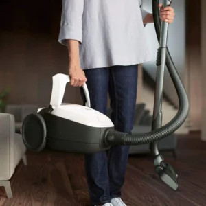 طراحی این جاروبرقی به گونهای است که هم ظاهری جذاب دارد و هم کار کردن با آن بسیار راحت است. وزن متعادل ۷ کیلوگرمی آن، امکان حمل و جابهجایی آسان را فراهم کرده و سه چرخ روان، حرکت نرم و بیدردسری را روی انواع سطوح ایجاد میکند. طول کابل ۹ متر، همراه با شعاع عملکرد ۱۲ متری، باعث میشود بدون نیاز به تعویض مداوم پریز، بتوانید فضای بزرگی را جارو کنید. یکی از نکات مثبت این مدل، کنترل روی دسته است که دسترسی به تنظیمات مختلف را راحتتر کرده و دیگر نیازی نیست هر بار برای تغییر قدرت مکش یا خاموش و روشن کردن دستگاه خم شوید. طراحی لوله تلسکوپی هم باعث میشود بتوانید ارتفاع آن را متناسب با نیاز خود تنظیم کنید و تجربهای راحتتر هنگام نظافت داشته باشید.یکی از ویژگیهای مهم این مدل، استفاده از پاکت s bag با ظرفیت ۳.۵ لیتر است. این پاکت علاوه بر اینکه فضای زیادی برای جمعآوری زباله دارد، بهگونهای طراحی شده که تخلیه آن کاملاً بهداشتی و بدون پخش شدن گردوغبار انجام میشود. با این ظرفیت بالا، نیازی به تعویض مداوم پاکت نیست و این باعث صرفهجویی در هزینهها نیز میشود.